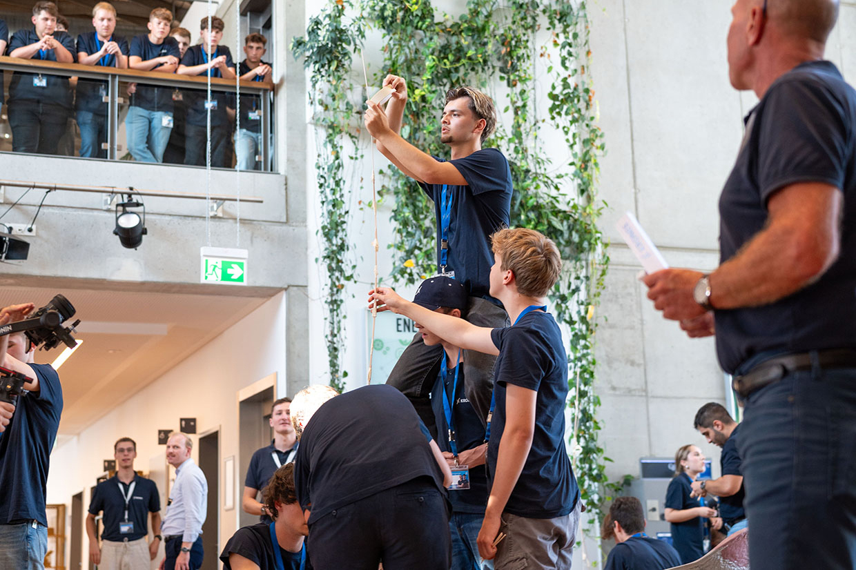 Apprentices who started their training at Krones in 2024 or 2025 will already be familiar with Welcome Week. It’s a four-day onboarding event for new apprentices, persons undergoing reskilling and students enrolled in a combined vocational training and degree program, and it’s aimed at helping them quickly get oriented at Krones. The highlight among the many activities is a two-day gathering that brings together all new apprentices from across the German centers in one place, so they can get to know each other. An event like this needs careful planning. And that is where the organizing team comes in: Second- and third-year apprentices ensure that participants from the other plants are well taken care of in Neutraubling, coordinating everything from hotel accommodations to a shared meal and plant tours. Another important aspect of the event are the team-building games, which all apprentices take part in.