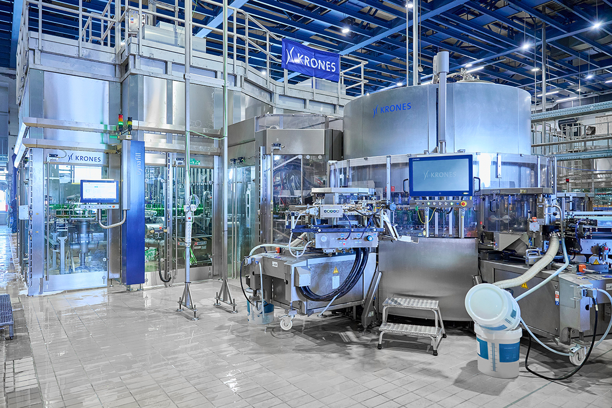 En 2023, cuando se comenzó a estudiar cómo modernizar el llenado de botellas de vidrio, los responsables recurrieron a Krones. Los planes se centraron en la línea 2, que hasta entonces estaba diseñada exclusivamente para llenar botellas de vidrio retornables de 0,5 litros. Instalada originalmente hace más de 30 años, hace unos años Krones ya había modernizado la desencajonadora, la inspeccionadora de botellas vacías y algunos transportadores. Ahora había llegado el turno de las máquinas principales, y debido a que la demanda de productos sigue siendo alta, estas debían ser reemplazadas con la producción en curso.